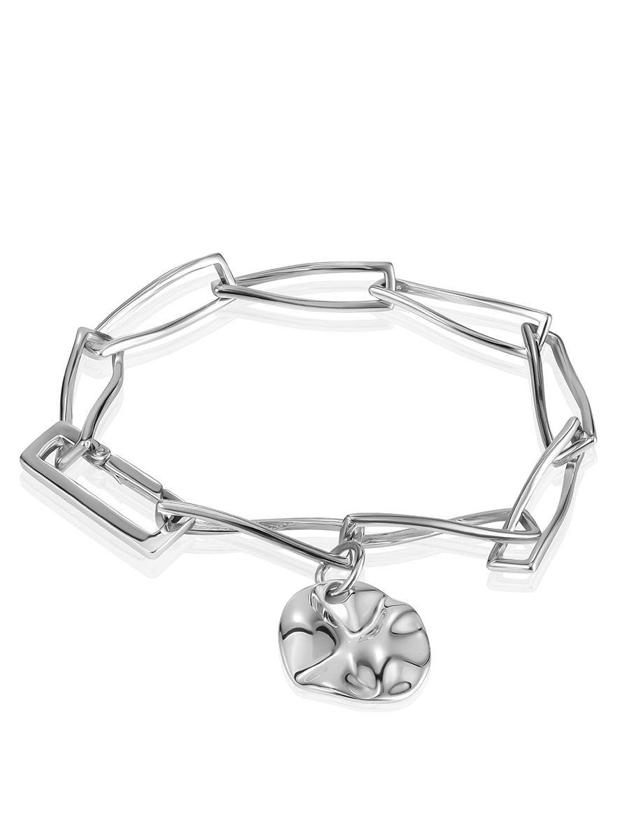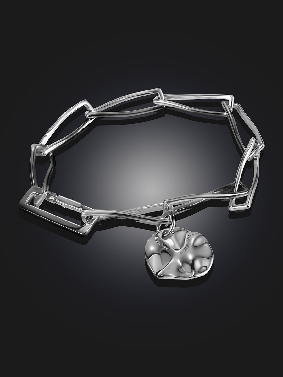 Добавьте винтажного шарма вашему образу с серебряным браслетом-цепочкой, украшенным изящной подвеской-монеткой. Это символичное украшение идеально сочетает в себе классику и современные тренды, становясь вашим любимым талисманом на каждый день.