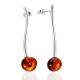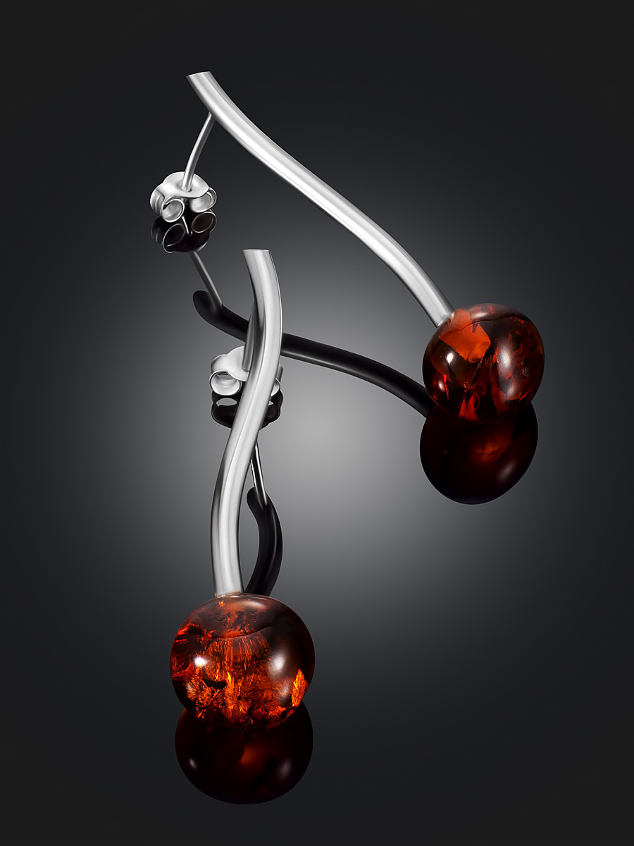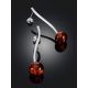 Тонкие серебряные палочки, изящные, как росчерк пера, и на конце — янтарный акцент, живой, тёплый, чуть небрежный. Шарик неправильной формы будто ускользает из рамок геометрии — и именно в этом очарование украшения.