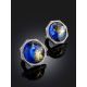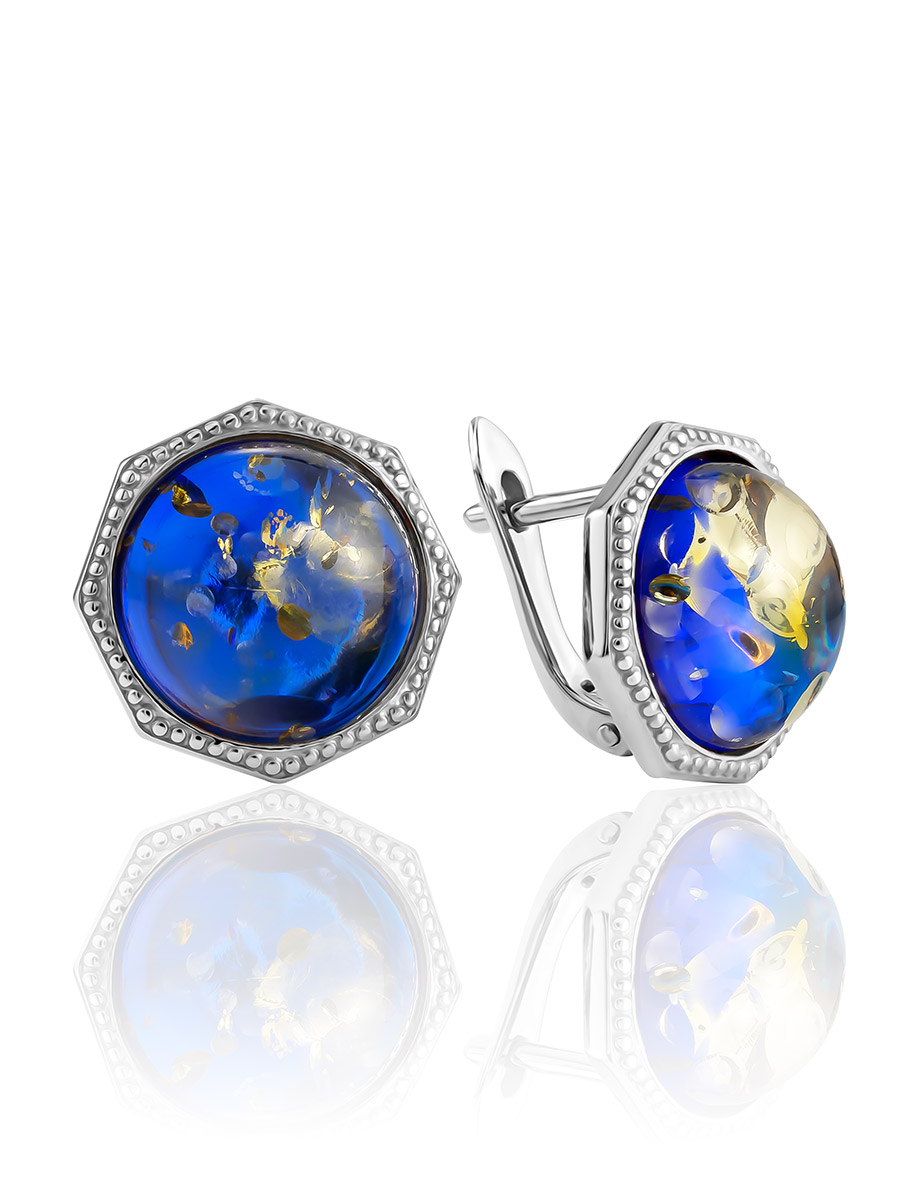 Серьги с натуральным янтарём насыщенного синего цвета «Шахерезада»
