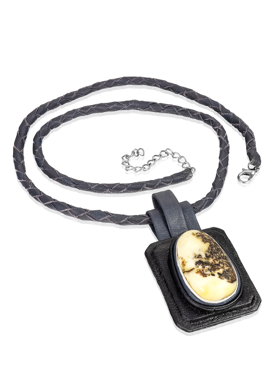 Колье из кожи «Амазонка» с пейзажным янтарём