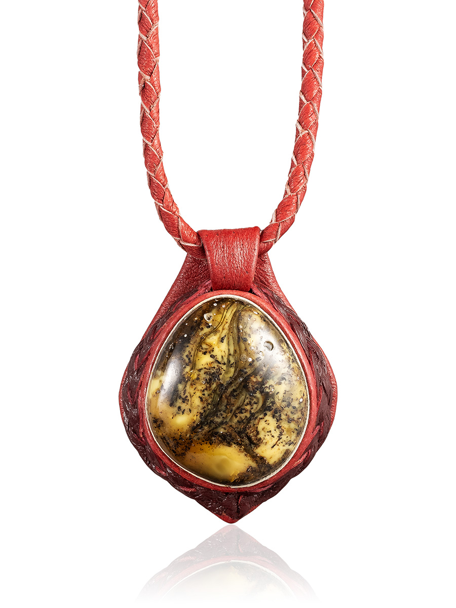 Колье из кожи «Амазонка» с текстурным янтарём