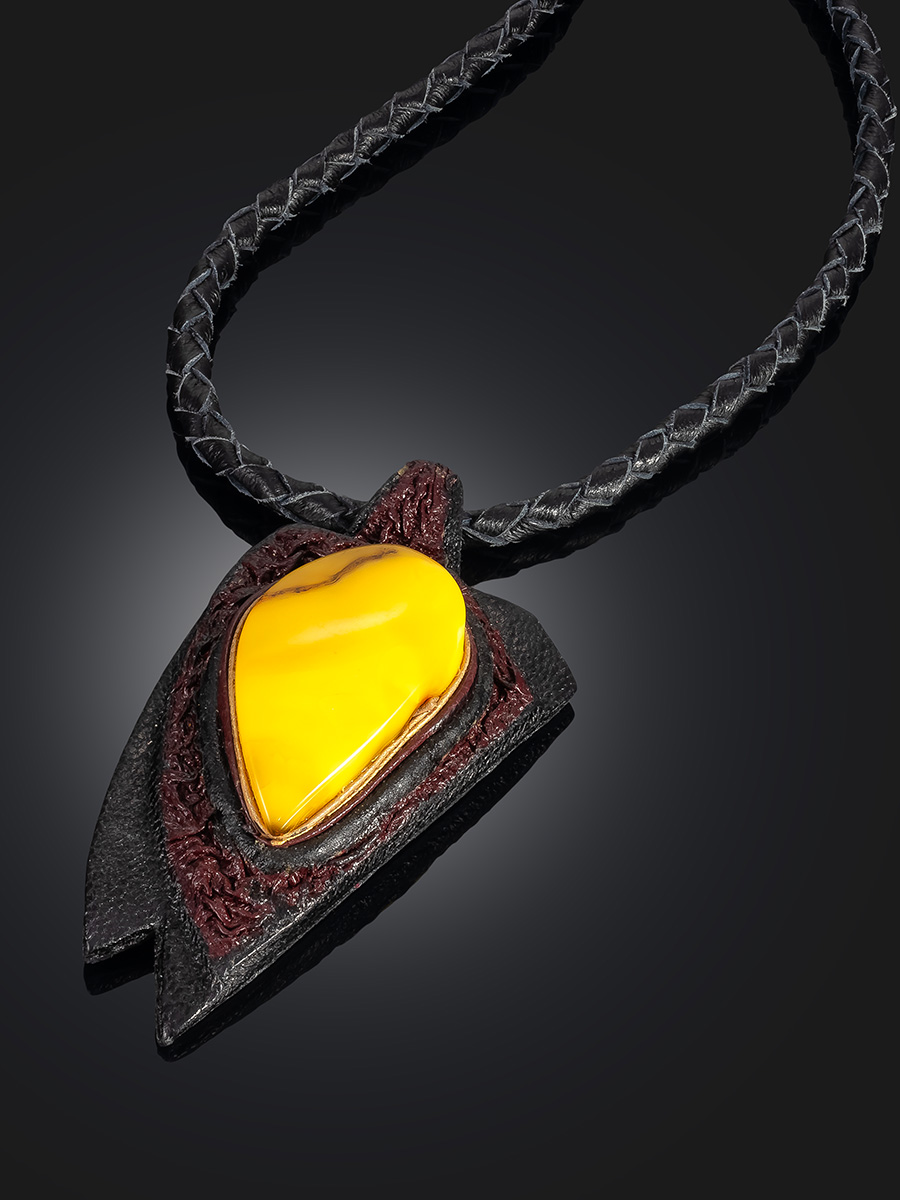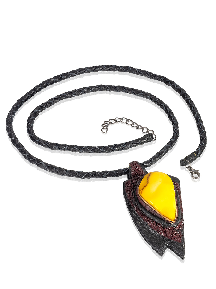Колье из кожи «Амазонка» с медовым янтарём