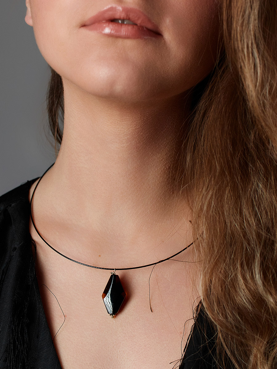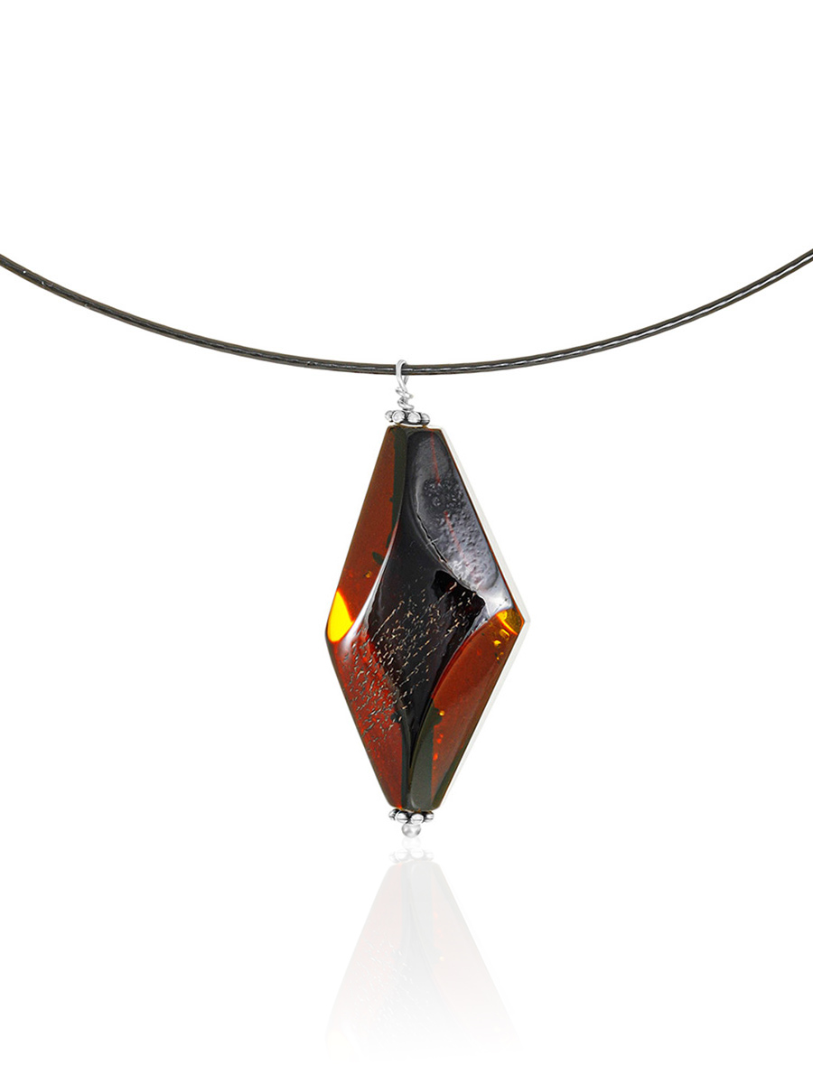 Подвеска с тёмно-вишнёвым ромбом — как капля ночи, пойманная в янтарную ловушку. Скошенные грани создают игру теней, превращая украшение в мрачноватый, но чарующий акцент. Для тех, кто носит тьму с изяществом.