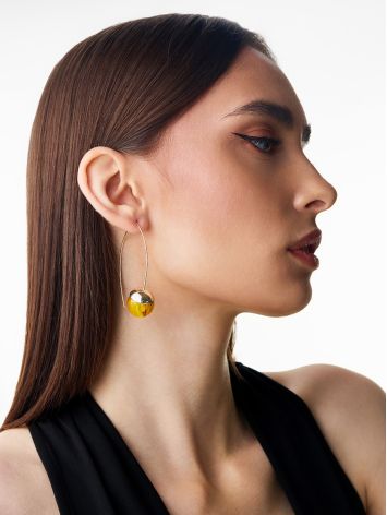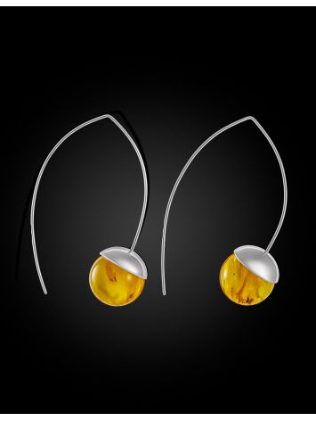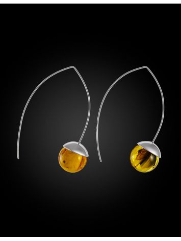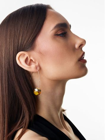 Стильные серьги-крючки «Клио» с янтарём с инклюзами