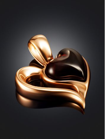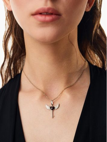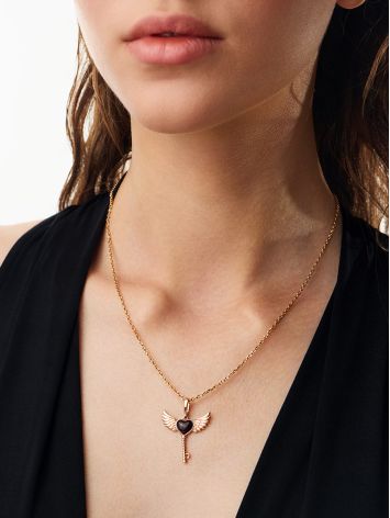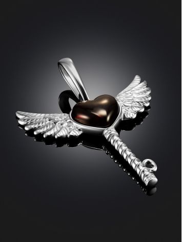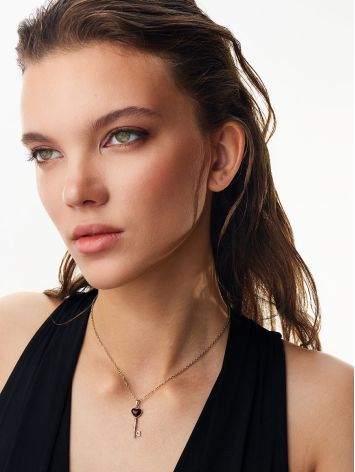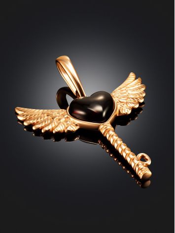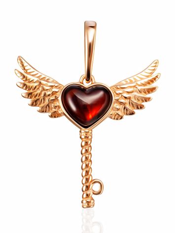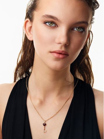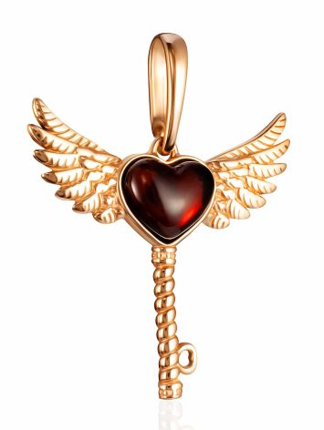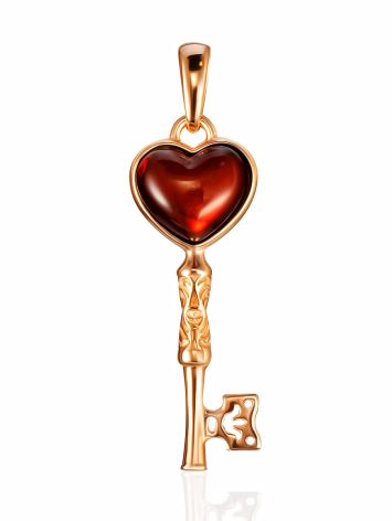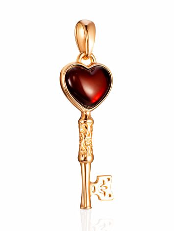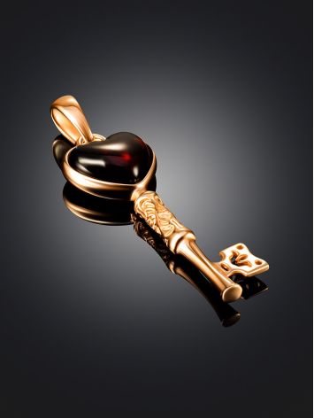 Кулон в романтическом дизайне «Ключ от сердца» с вишнёвым янтарём