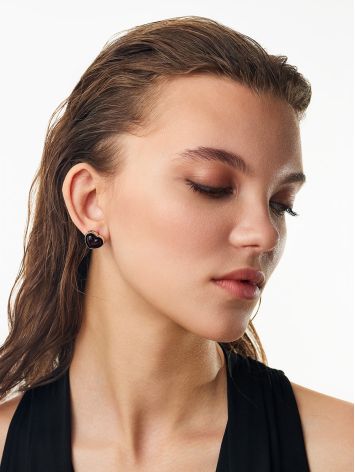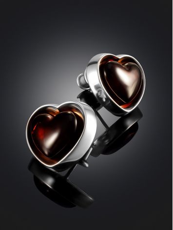 Романтичные серьги-гвоздики «Янтарное сердце» из вишнёвого янтаря