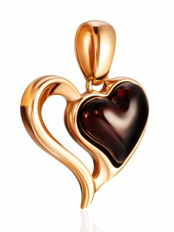 Яркие позолоченные серьги с натуральным вишнёвым янтарём «Янтарное сердце»