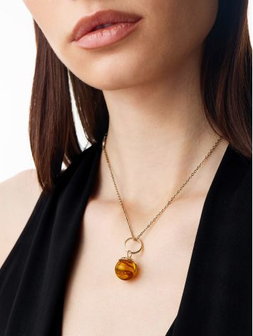 Круглая подвеска «Клио» из золотистого текстурного янтаря с инклюзом
