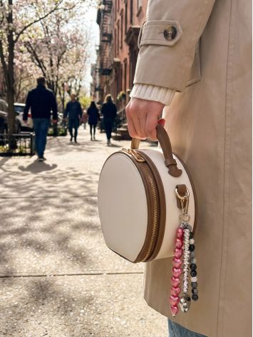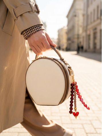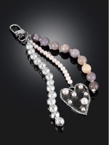 Женственный брелок-подвеска на сумку с сердцем и жемчужинами