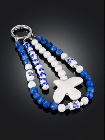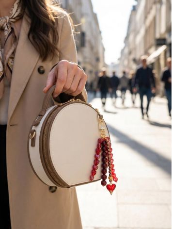 Яркая подвеска-брелок на сумку с бусинами и сердечком