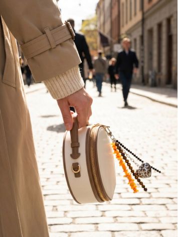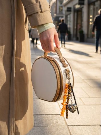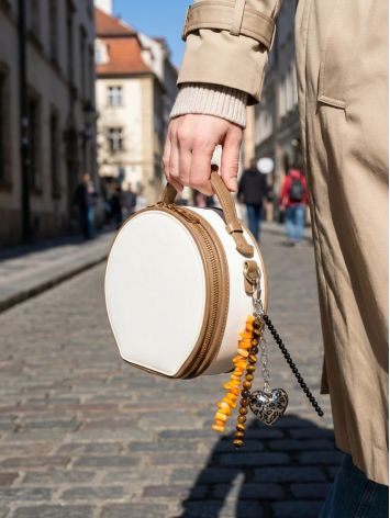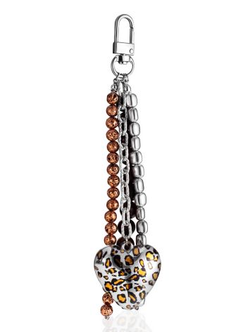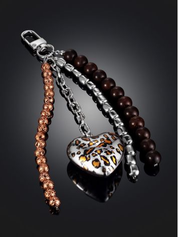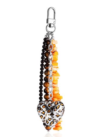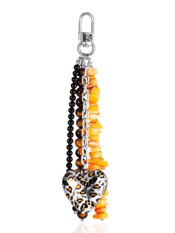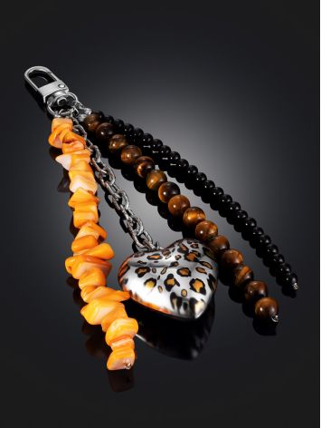 Дизайнерский брелок на сумку c янтарем и сердцем