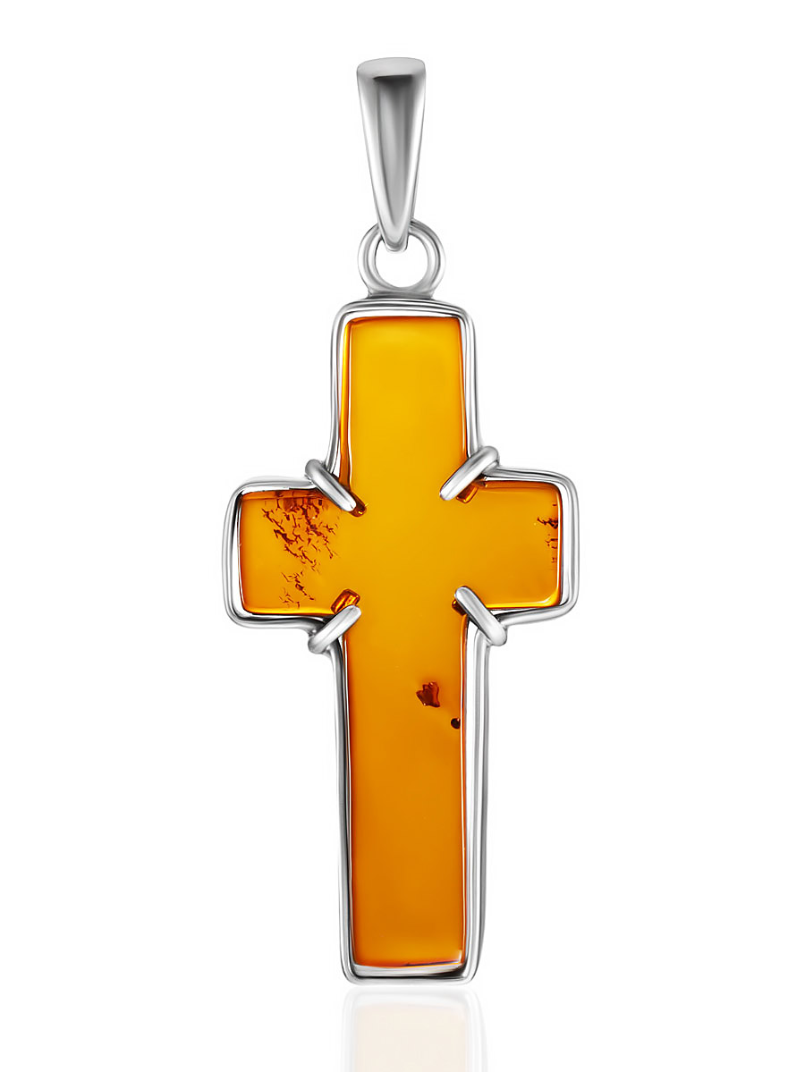 Эффектный кулон-крест словно светится изнутри собственным сиянием — натуральный янтарь щедро делится солнечным теплом и светом со своим обладателем.