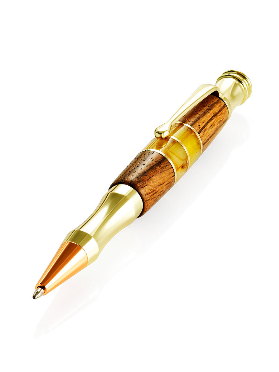 Красивая авторская ручка из древесины карельской берёзы и янтаря